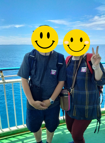 気持ちい風にあたりながらフェリーの中で記念撮影です。