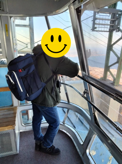 ロープウェイで移動中です。